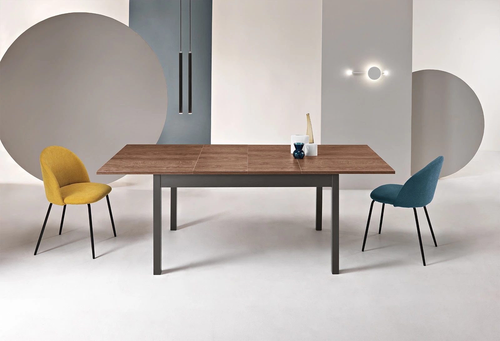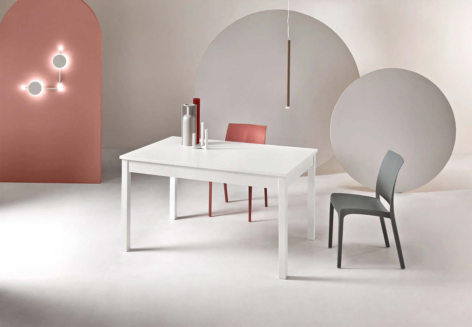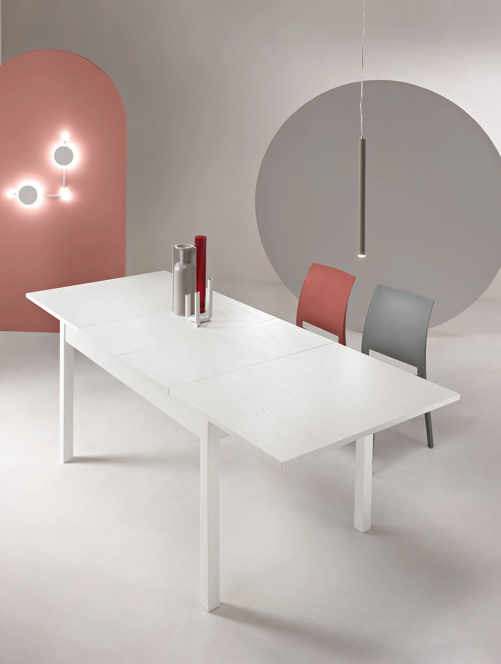 Tavolo allungabile con due allunghe centrali da 40 cm. Disponibile in diversi colori.