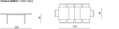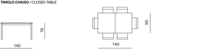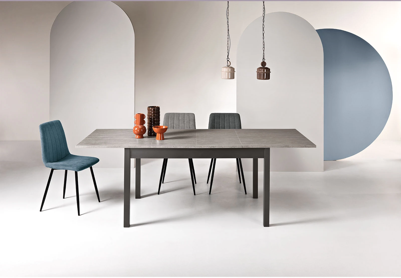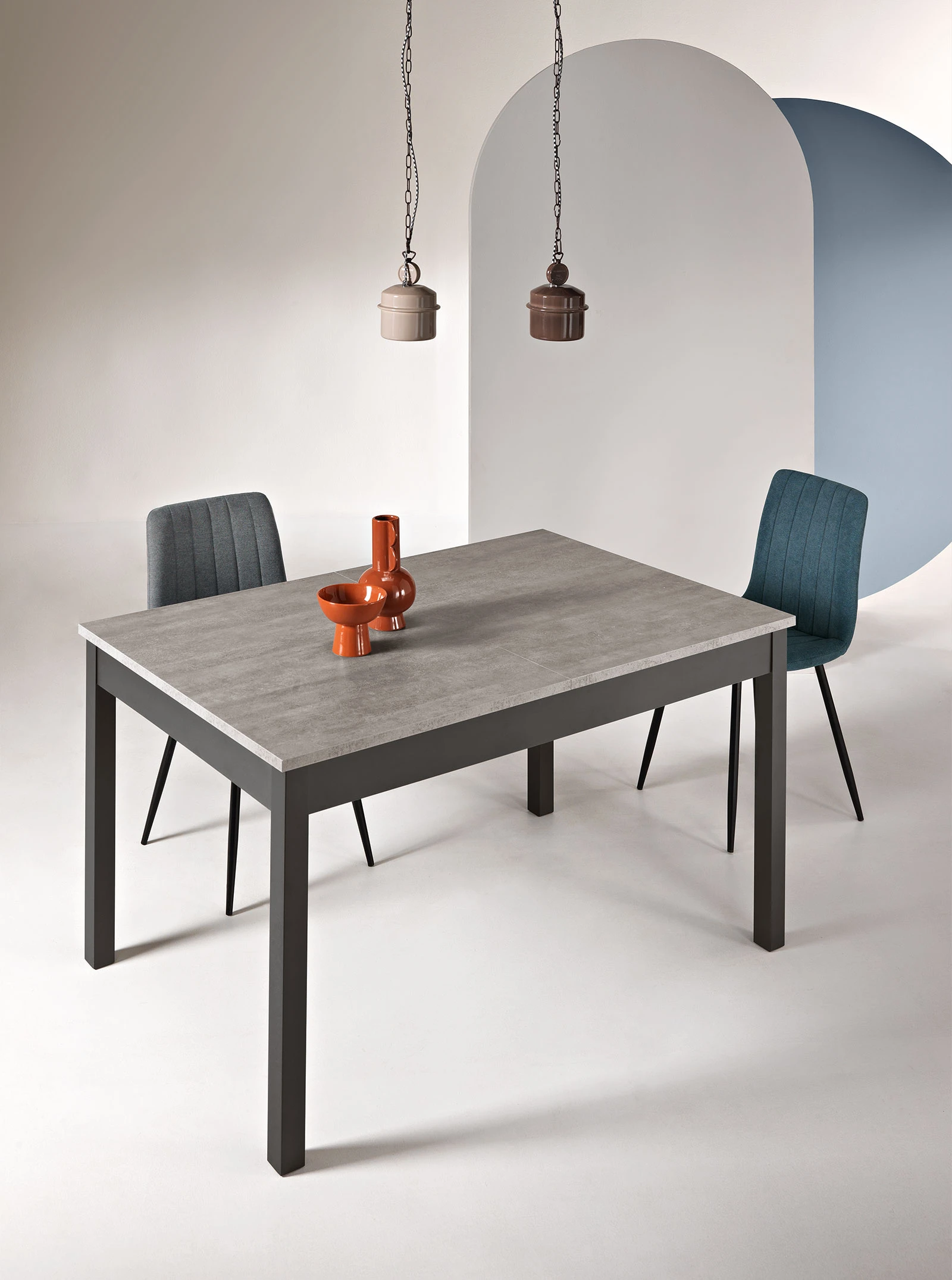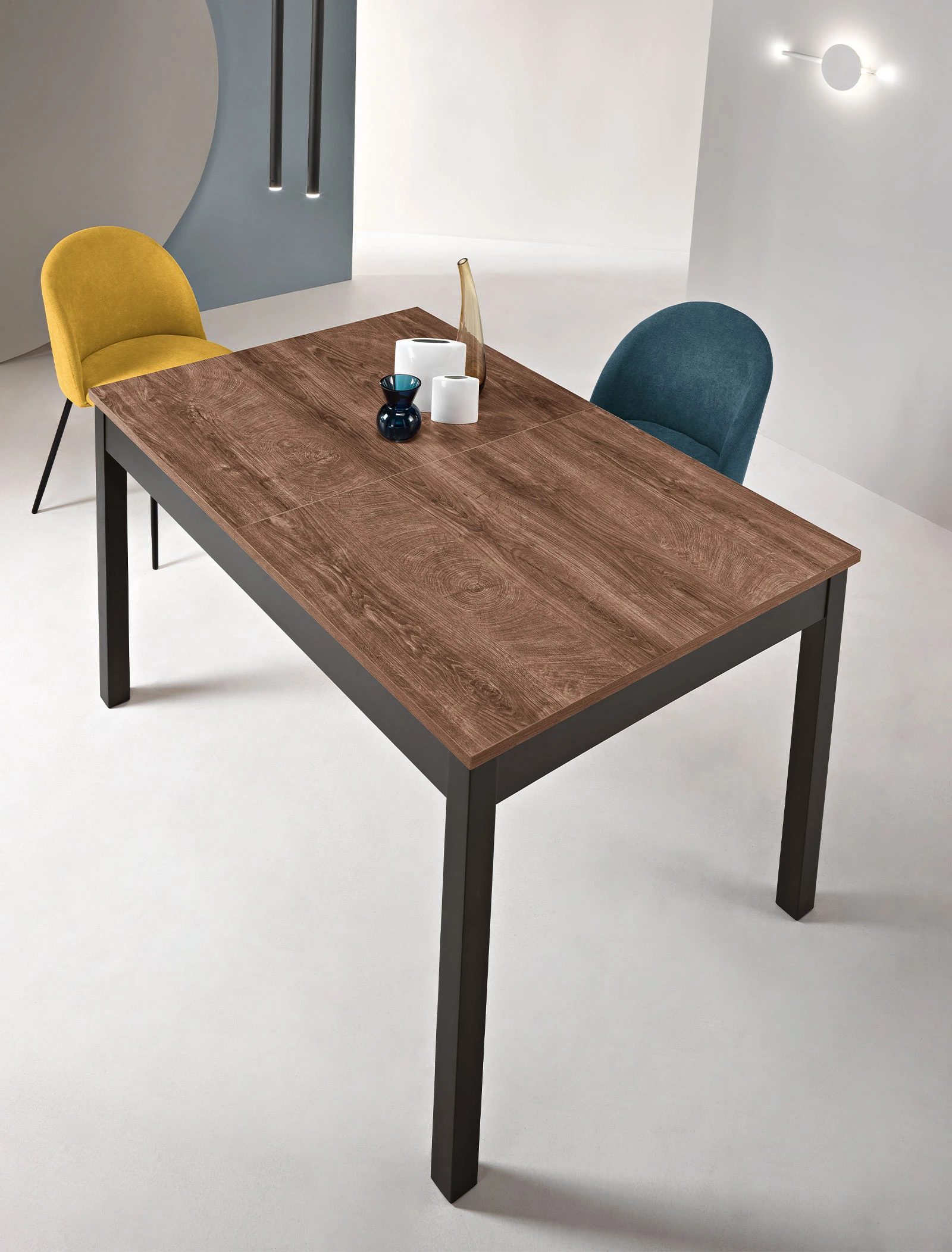Tavolo allungabile con due allunghe centrali da 40 cm. Disponibile in diversi colori.