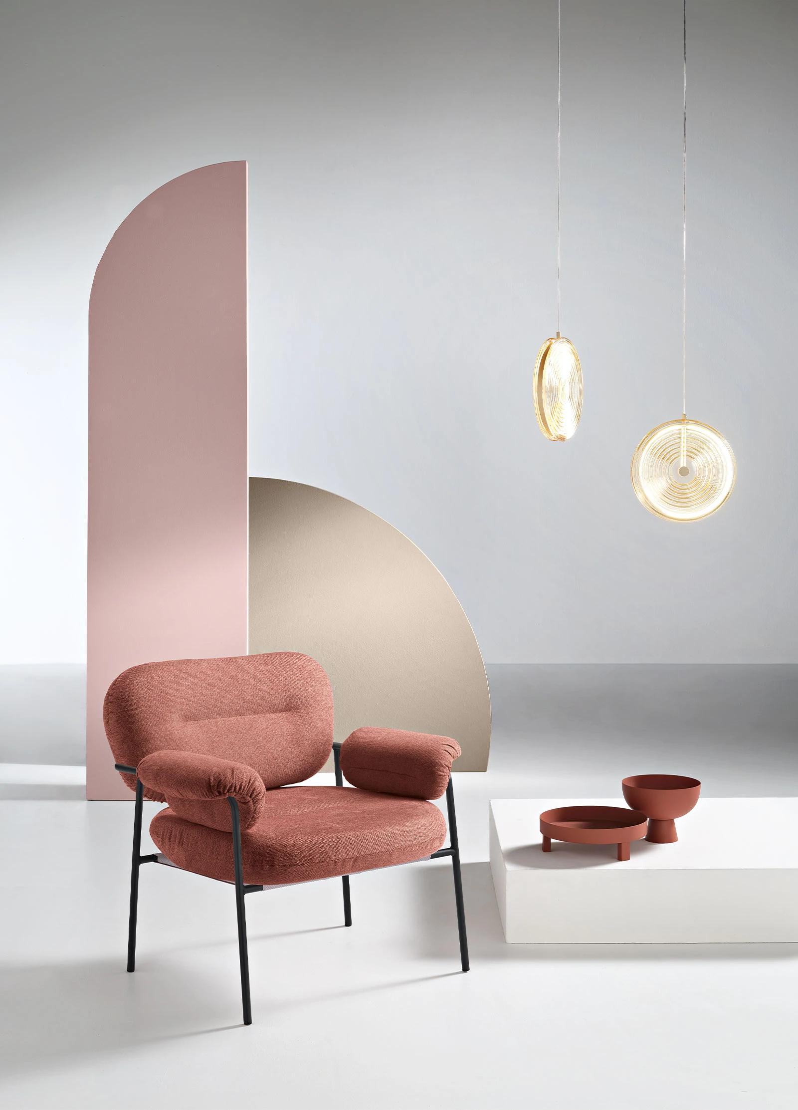 Cuky poltrona in tessuto con struttura in metallo.