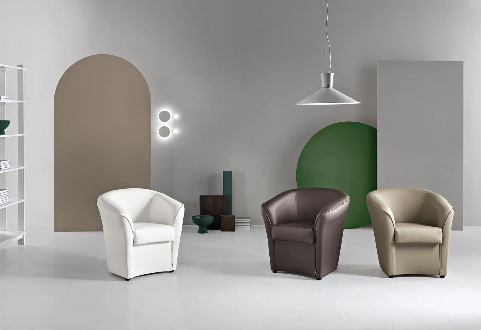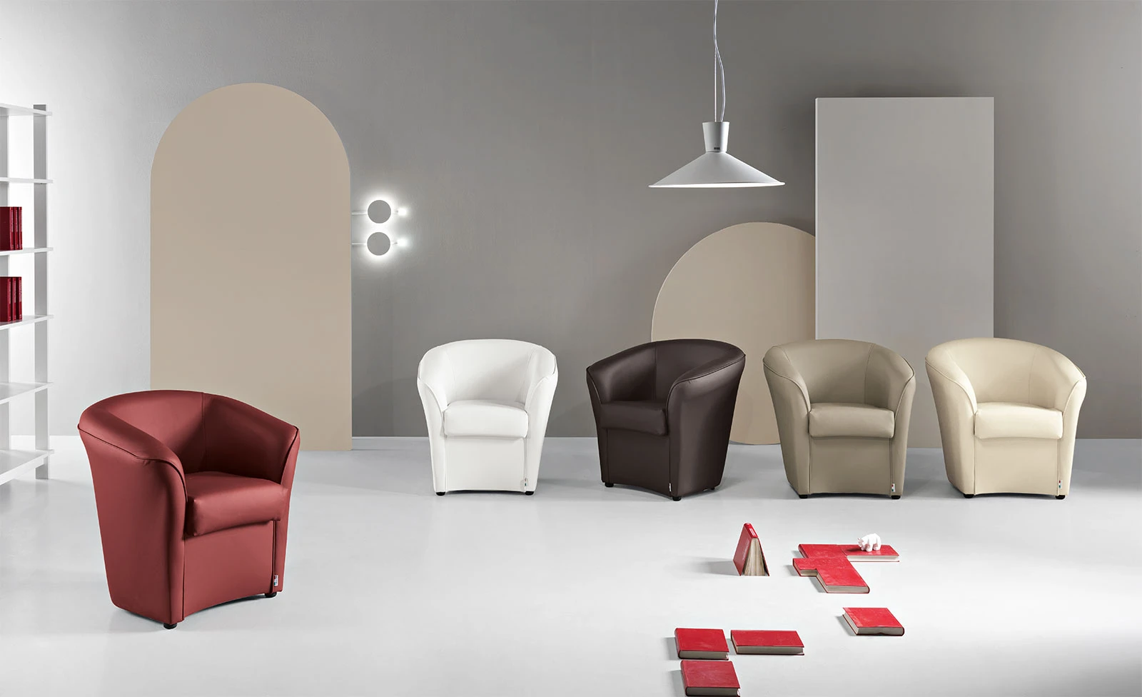 Poltrona in ecopelle. Disponibile in diversi colori.